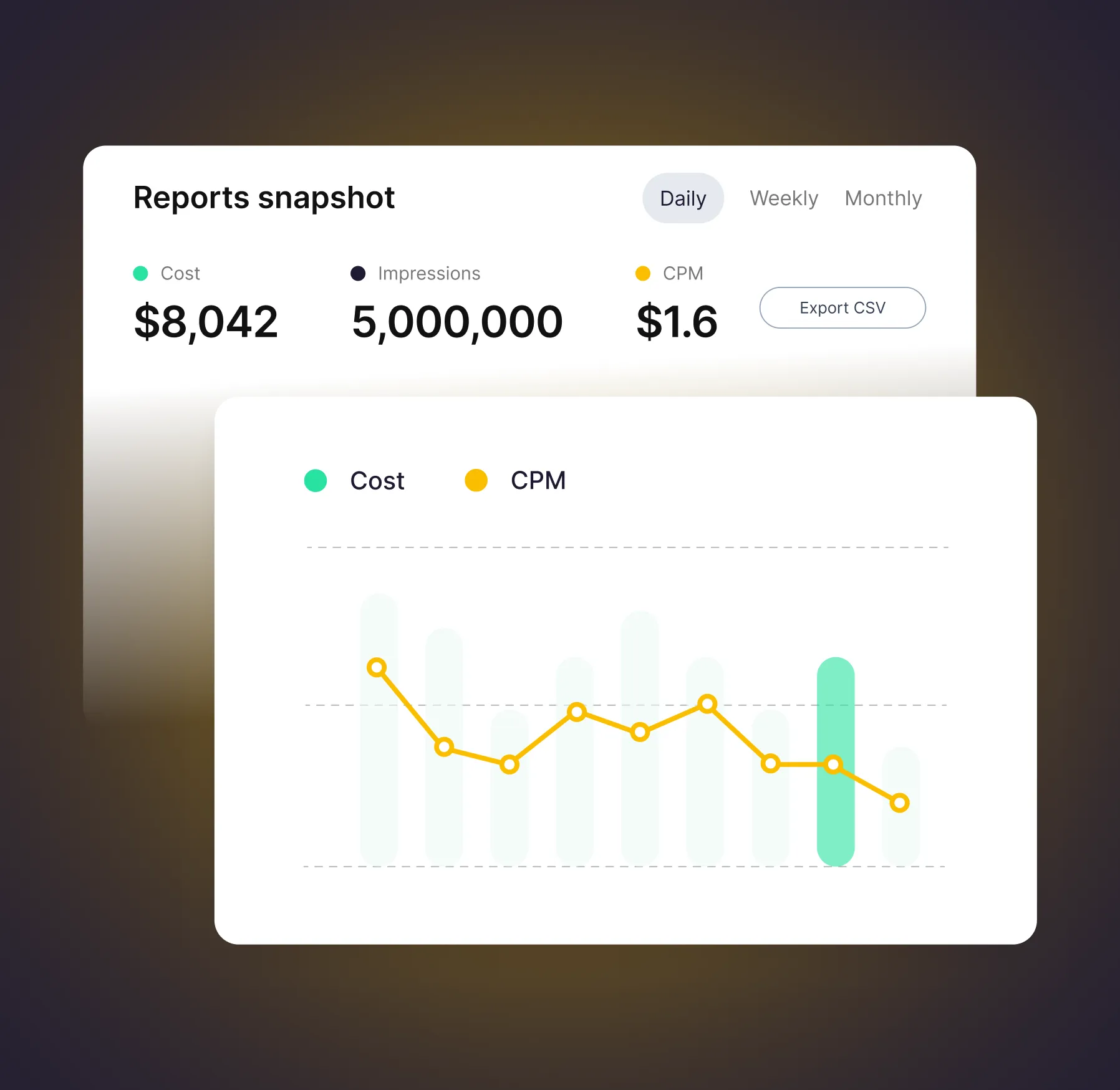Medya planını alınHer kampanyada görünürlüğü %99 artırın. Dolandırıcılığa karşı koruma ve şeffaf raporlama ile güvenilir ortamlarda premium uygulama içi reklam alanlarına erişin.